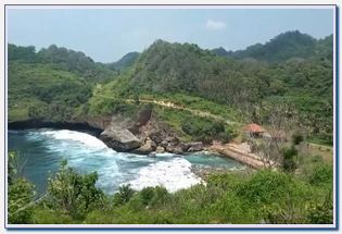 Suara gemuruh ombak menerjang bebatuan karang akan terdengar pada saat kamu mendekati area tepi laut ini. Pinggir lautannya dikelilingi oleh perbukitan tinggi menjadi salah satu pesona dan daya pikat tersendiri yang disuguhkan lokawisata daerah ini.